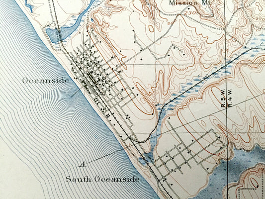 Antique Oceanside, California 1898 US Geological Survey Topographic Map – San Luis Rey, Encinitas, Escondido, Carlsbad, Santa Rosa, Merle CA