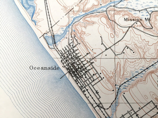 Antique Oceanside, California 1901 US Geological Survey Topographic Map – San Luis Rey, Encinitas, Escondido, Carlsbad, Los Angeles Junction