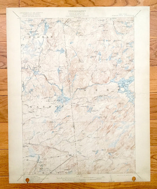 Antique Number Four, New York 1915 US Geological Survey Topographic Map - Croghan, New Bremen, Watson, Webb Greig Beaver Lake Adirondacks NY