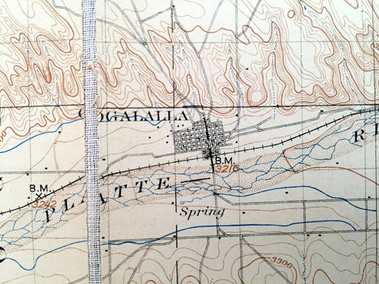Antique Ogalalla, Nebraska 1900 US Geological Survey Topographic Map – Vail, Brule, Chase, Logan, Whitetail, Lonergan Brooking Blue Creek NE