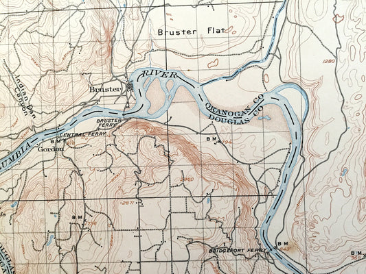 Antique Okanogan, Washington 1905 US Geological Survey Topographic Map – Okanogan County, Alma, Olema, Malott, Knowlton, Pateros, Bridgeport