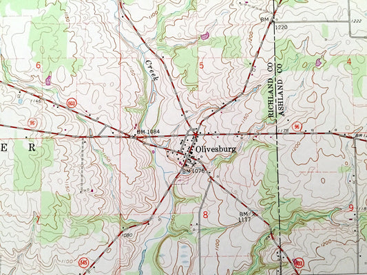 Antique Olivesburg, Ohio 1960 US Geological Survey Topographic Map – Richland County, Franklin, Shenandoah, Weller, Milton, Adario, OH