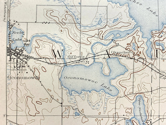 Antique Oconomowoc, Wisconsin 1892 US Geological Survey Topographic Map – Merton, Delafield, Ottawa, Genesee, Waukesha, Pewaukee, Summit, WI