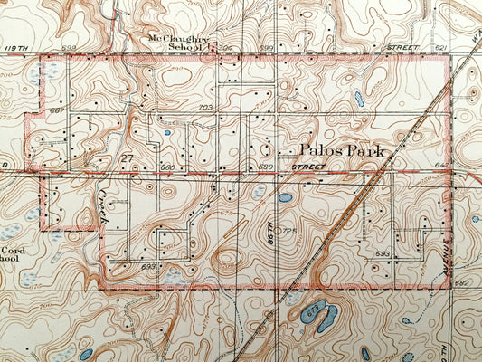 Antique Palos Park, Illinois 1928 US Geological Survey Topographic Map – Orland Park, Bremen, Worth, Oak Lawn, Stickney, Lyons, Chicago, IL