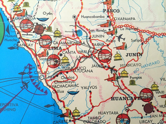 Antique Peru, South America 1971 Tourist Map – Lima, San Martin, Ancash, Arequipa, Lambayeque, Ecuador, Columbia, Brazil, Bolivia, Chile
