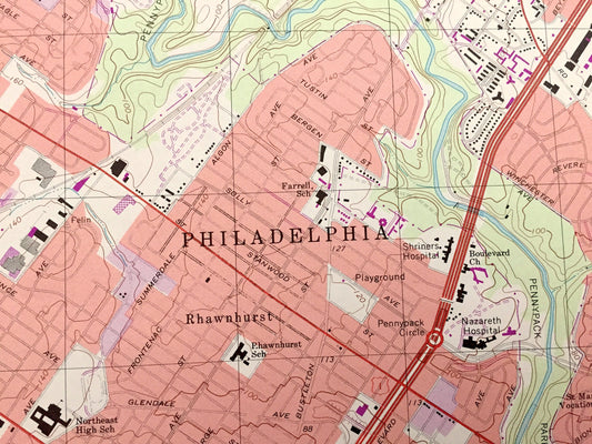 Antique Philadelphia, Pennsylvania 1997 US Geological Survey Topographic Map – Frankford, Cheltenham, Jenkintown, Riverton, New Jersey PA NJ