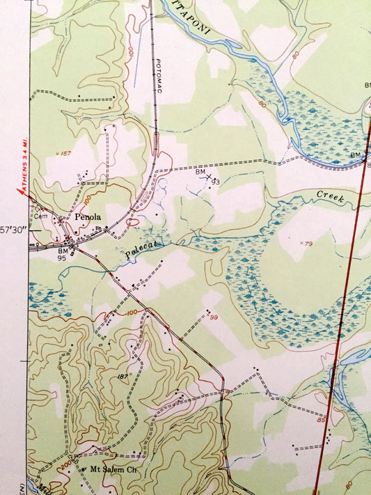 Antique Penola, Virginia 1951 US Geological Survey Topographic Map – Caroline Co, Oak Corner, Kemp Corner, File, Wrights Fork, Shumansville