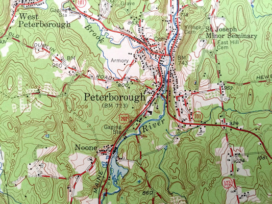Antique Peterborough, New Hampshire 1953 US Geological Survey Topograph Map – Hancock, Greenfield, Greenville Francestown Mount Monadnock NH