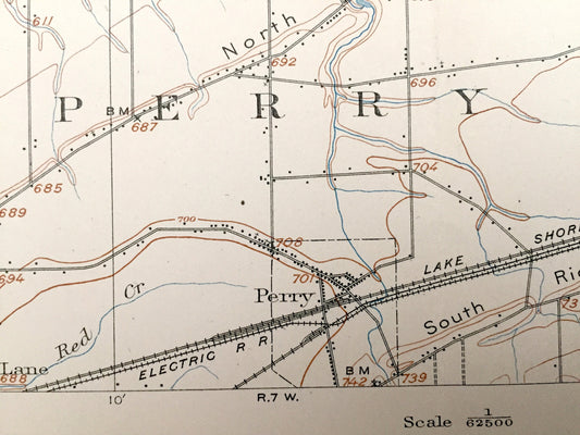 Antique Perry, Ohio 1905 US Geological Survey Topographic Map – Lake County, Painesville, Redbird, Harpersfield, Geneva, Unionville, Madison