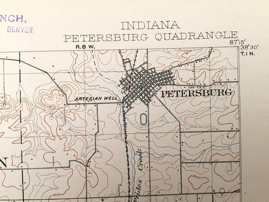 Antique Petersburg, Indiana 1903 US Geological Survey Topographic Map – Pike, Gibson and Knox County, Oakland City, Francisco, Glezen, IN