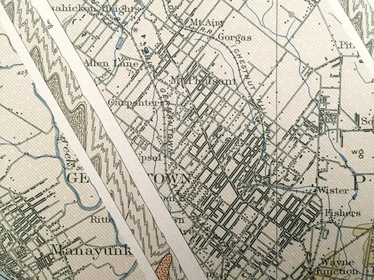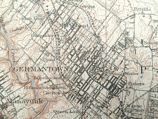 Antique Philadelphia, Pennsylvania 1899 U.S. Geological Survey Map - Germantown, Manayunk, Mt Airy, Chestnut Hill, Ambler, Lower Merion, PA