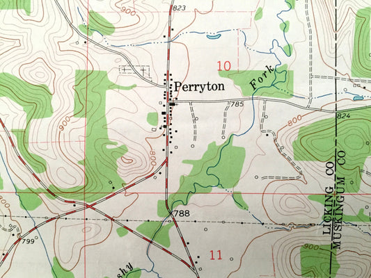 Antique Perryton, Ohio 1962 US Geological Survey Topographic Map – Licking County, Jackson, Fallsbury, Pike, Pleasant Valley, Ashcraft Ridge