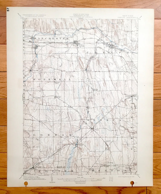 Antique Phelps, New York 1902 US Geological Survey Topographic Map - Ontario, Yates County, Clifton Springs Manchester Shortsville Seneca NY