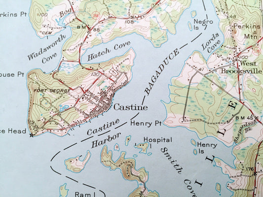 Antique Penobscot Bay, Maine 1941 US Geological Survey Topographic Map – Northport, Searsport, Castine, Brooksville, Deer Isle, Islesboro ME