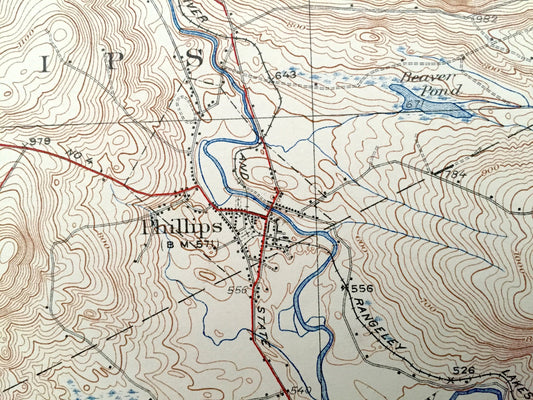 Antique Phillips, Maine 1932 US Geological Survey Topographic Map – Franklin County, Redington, Mt Abraham, Madrid, Salem, Avon, Berlin, ME