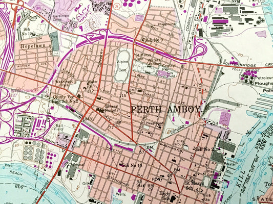Antique Perth Amboy, New Jersey 1956 US Geological Survey Topographic Map – Union, Middlesex County, Scotch Plains, Woodbridge, Rahway, NJ