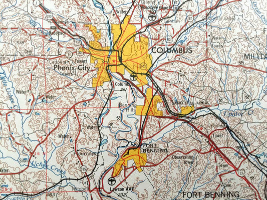 Antique Phenix City, Alabama 1955 US Geological Survey Topographic Map – Georgia, Lanett, Opelika, Auburn, Tuskegee, Alexander City, Ladonia
