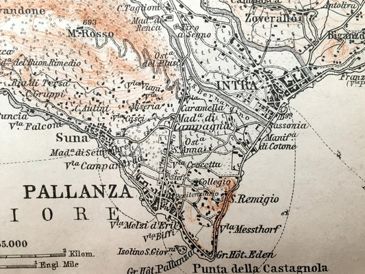 Antique 1904 Pallanza & Stresa, Italy Map from Baedekers Guide – Lago Maggiore, Verbano-Cusio-Ossola, Piedmont, Baveno, Intra, Castagnola