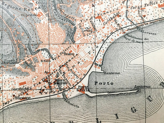 Antique 1904 Sanremo, Italy Map from Baedekers Guide – Imperia, Liguria, Villa Ormond, Casino, Mare Ligurio, Ariston Theater, San Remo