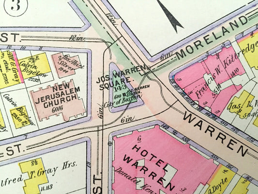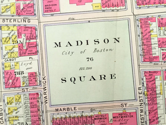 Antique 1906 Roxbury, Massachusetts Map from GW Bromley Atlas – Boston, Suffolk County, Fort Hill, Dudley Square, Malcolm X, Warren Square