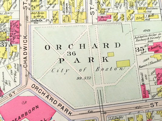 Antique 1906 Roxbury, Massachusetts Map from GW Bromley Atlas – Boston, Suffolk County, Orchard Park, Mt Pleasant, South of Washington