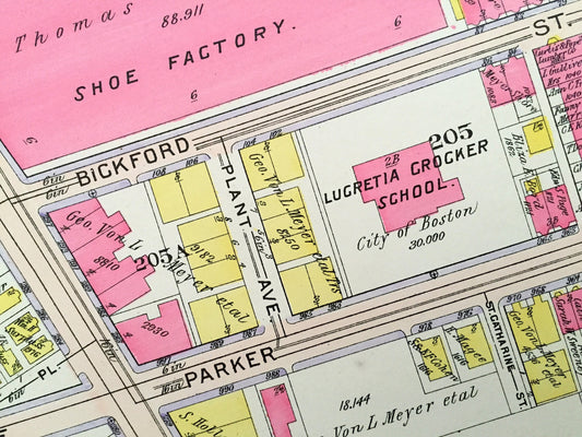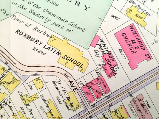 Antique 1906 Roxbury, Massachusetts Map from GW Bromley Atlas – Boston, Suffolk County, Fort Hill, Frederick Douglass, Madison Park School