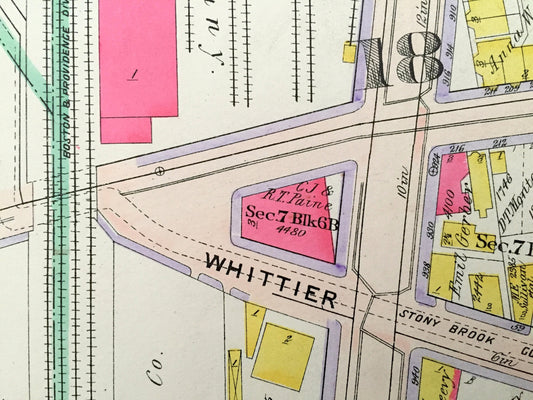 Antique 1906 Brookline, Massachusetts Map from GW Bromley Atlas – Roxbury, Boston, Suffolk County, Mission Hill, Northeastern, Wentworth