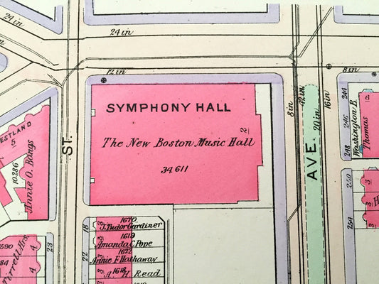 Antique 1906 Fenway-Kenmore, Boston, Massachusetts Map from GW Bromley Atlas – Suffolk County, Northeastern, Back Bay Fens, Symphony MA