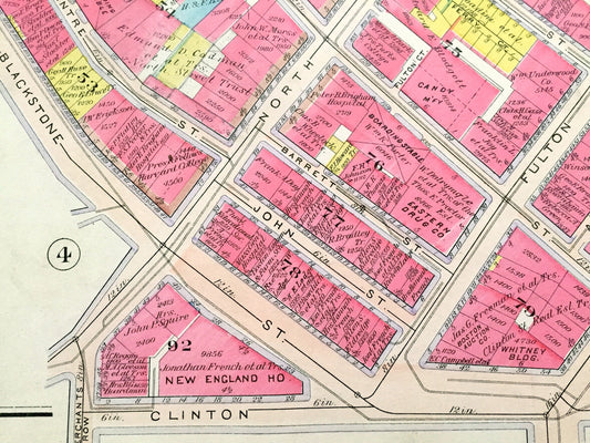 Antique 1908 North End, Boston, Massachusetts Map from G.W. Bromley Atlas – Downtown, Paul Revere House, Christopher Columbus Waterfront, MA