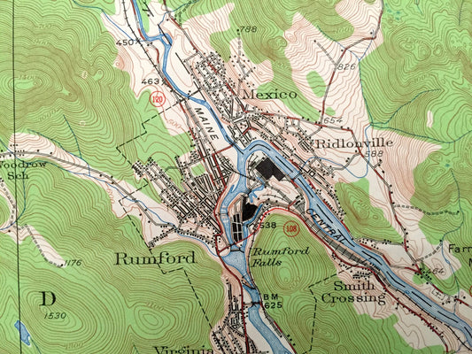 Antique Rumford, Maine 1927 US Geological Survey Topographic Map – Mexico, Ridlonville, Virginia, Roxbury, Byron, Oxford, Franklin County ME