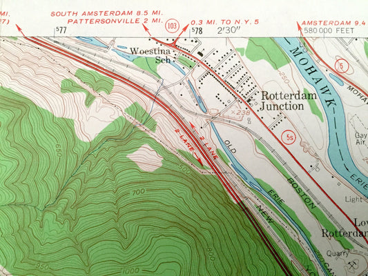 Antique Rotterdam Junction, New York 1954 US Geological Survey Topographic Map – Schenectady County, Glenville, Princetown, Duanesburg NY