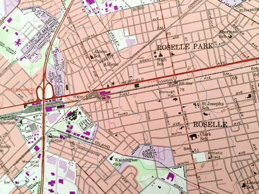 Antique Roselle, New Jersey 1955 US Geological Survey Topographic Map – Essex, Union County, Millburn, Springfield, Crawford, Maplewood, NJ
