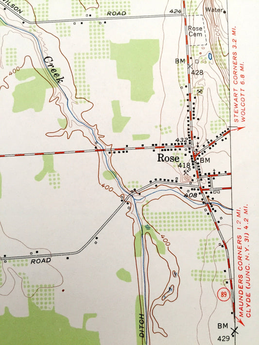 Antique Rose, New York 1953 US Geological Survey Topographic Map – Wayne County, Huron, Sodus Bay, Lyons, Alton, Lummisville, Resort, NY