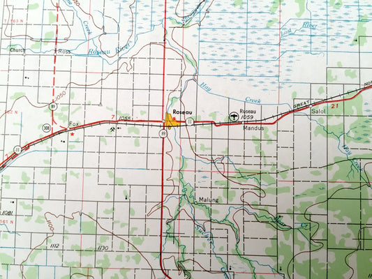 Antique Roseau, Minnesota 1954 US Geological Survey Topographic Map – Warroad, Boudette, Swift, Hackett, Lude, Manitoba, Ontario, Canada, MN