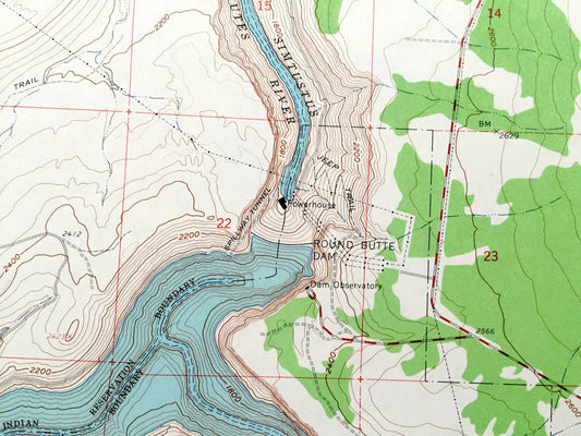 Antique Round Butte Dam, Oregon 1962 US Geological Survey Topographic Map – Jefferson County, Grandview, Cove Palisades State Park, OR