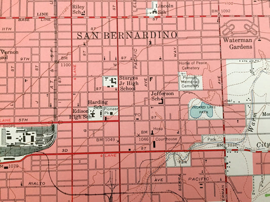 Antique San Bernardino, California 1954 US Geological Survey Topographic Map – RiversideCounty, Rialto, Colton, Grand Terrace, Jurupa, CA