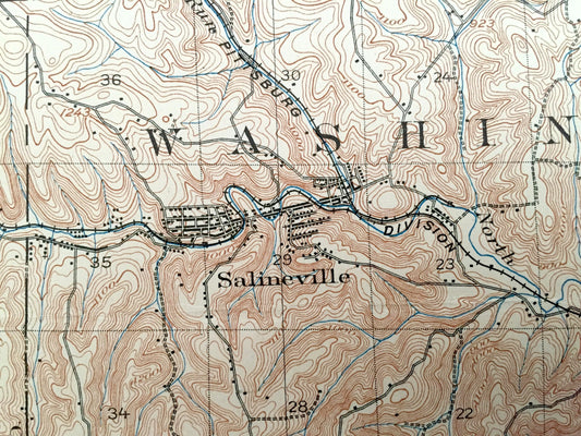 Antique Salineville, Ohio 1905 US Geological Survey Topographic Map – Columbiana County, Hanover, Monroeville, Inverness, Kensington, Wayne