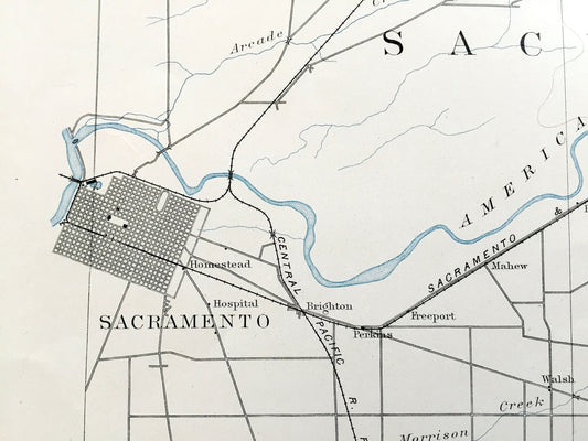 Antique Sacramento, California 1887 US Geological Survey Topographic Map – Yuba, Sutter, Placer, El Dorado, Sheridan, Ewing, Lincoln, CA