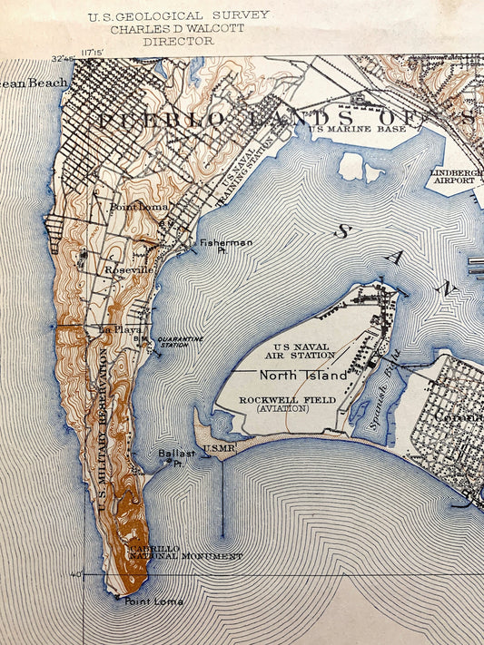 Antique San Diego, California 1950 US Geological Survey Topographic Map – La Jolla Bay, National City, Chula Vista, La Mesa, Tijuana, Mexico