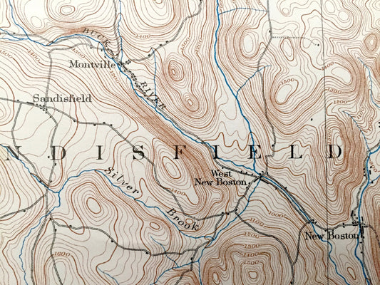Antique Sandisfield, Massachusetts 1897 US Geological Survey Topographic Map – Otis, Monterey, New Marlboro, Tolland, Norfolk, Connecticut