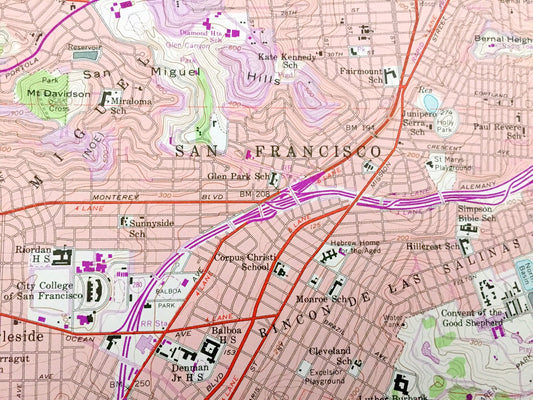 Antique San Francisco, California 1956 US Geological Survey Topographic Map – Buri Buri, San Mateo, Sunset, Sharp Park, Ingleside Bayview CA