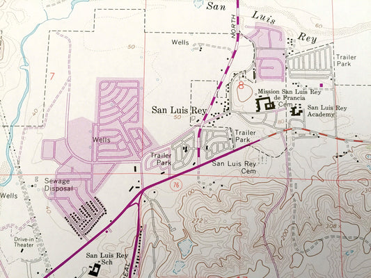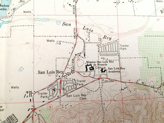 Antique San Luis Rey, California 1968 US Geological Survey Topographic Map – Carlsbad, Oceanside, Escondido Junction, Vista, Farr, CA
