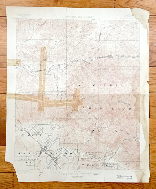 Antique San Fernando, Los Angeles, California 1900 US Geological Survey Topographic Map – Ex Mission, Pacoima Sunland Tujunga San Gabriel CA
