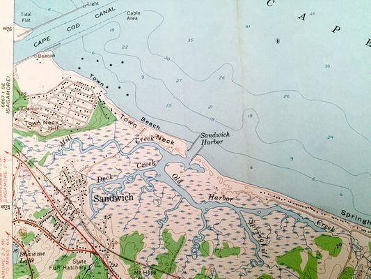 Antique Sandwich, Massachusetts 1957 US Geological Survey Topographic Map – Barnstable County, Wakeby, Newtown, Farmersville, Mashpee, MA