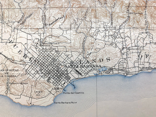 Antique Santa Barbara, California 1903 US Geological Survey Topographic Map – Montecito, Summerland, El Rincon, Santa Ynez Mountains CA