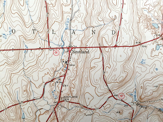 Antique Scotland, Connecticut 1953 US Geological Survey Topographic Map– Windham, New London County, Chaplin, Hampton, Canterbury, Lisbon CT