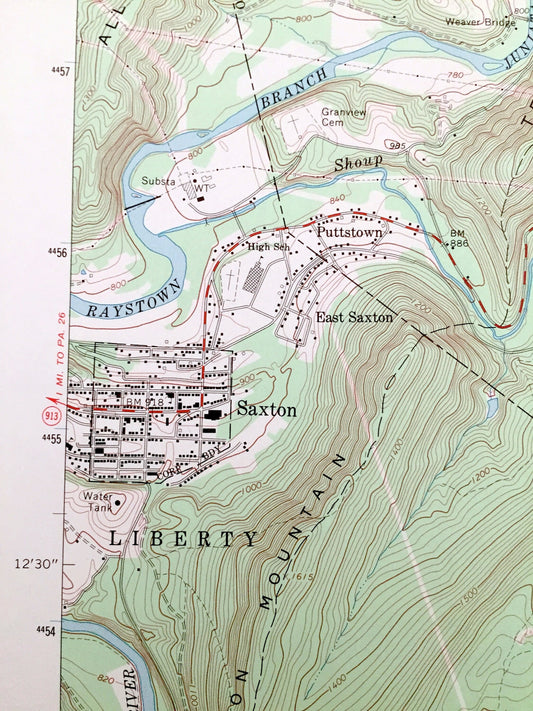 Antique Saxton, Pennsylvania 1968 US Geological Survey Topographic Map – Bedford County, Huntingdon County, Broad Top City, Defiance, Dudley