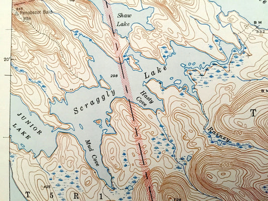 Antique Scraggly Lake, Maine 1944 US Geological Survey Topographic Map– Penobscot, Washington County, Talmadge, Grand Lake Stream, Topsfield