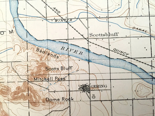 Antique Scottsbluff, Nebraska 1898 US Geological Survey Topographic Map – Rose, Castle Rock, Roubedeau, Kiowa, Ford, Winter Creek, Tabor, NE