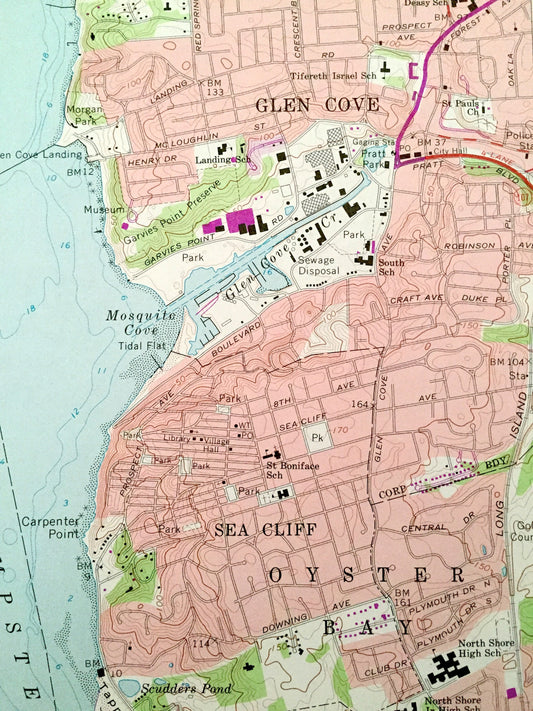 Antique Sea Cliff, New York 1968 US Geological Survey Topographic Map – Queens, Nassau County, Oyster Bay, Glen Cove, North Hempstead, NY